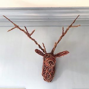 Jess Wilkinson will guide you through this intensive day of willow weaving to create a beautiful festive stags head to take home and install in the garden or indoors. You will learn techniques and tips to help you work with willow, including how to source the right kind of willow for sculpture, what tools you will need and how to approach the work bit by bit and weave a solid structure. By the end of this festive themed day you will have designed and constructed your own willow stags head angel to take home for Christmas – just as at home indoors as it would be outside.