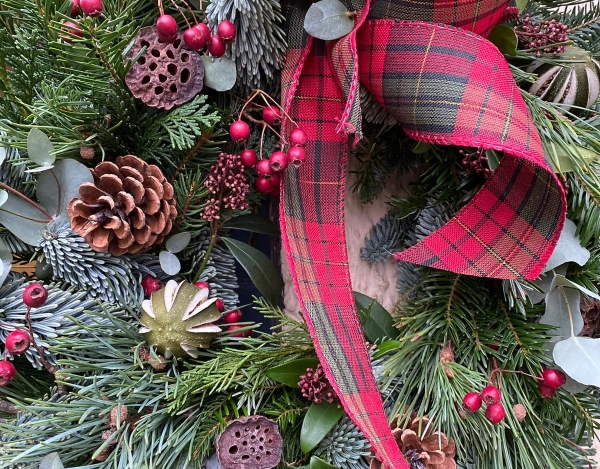 In this relaxed and creative session, you’ll be guided step-by-step in making your own beautiful, natural-looking wreath to hang proudly on your front door or gift to someone special.