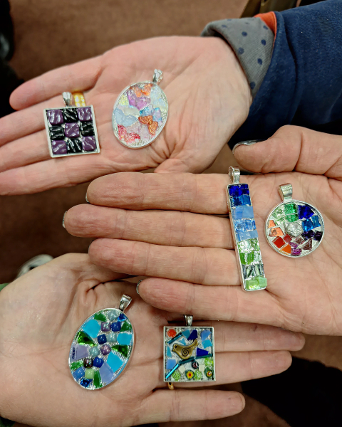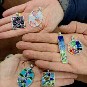 Under Lisa-marie’s expert guidance, you’ll learn the direct method of mosaic application on a small scale, perfect for pendants, brooches, or statement earrings. The session will begin with exploring design ideas and mapping out your jewellery piece(s), with plenty of inspiration and examples on hand.