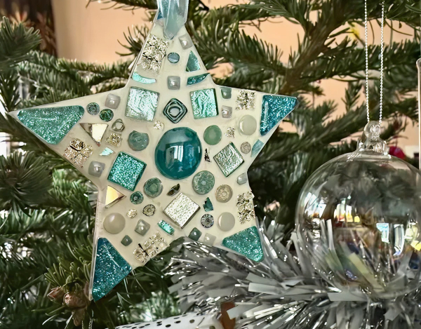 Get into the seasonal spirit and design your own unique mosaic decorations to brighten your tree, mantelpiece, or window.