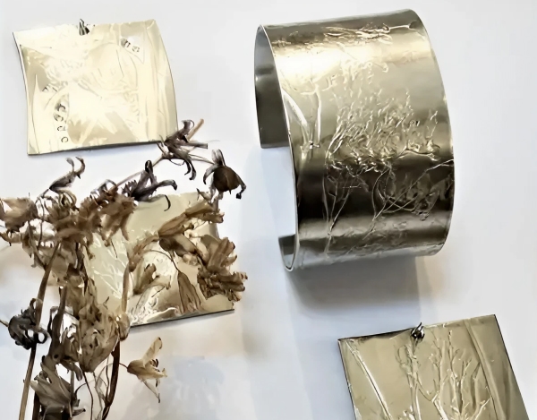 Join Ella to create your own pewter jewellery such as earrings, bangles, pendants and brooches (approx 3-4 finished items). Using lead free pewter we will apply texture and pattern to the metal using a traditional jewellers rolling mill – a tactile and addictive process. Please feel free to bring along any textures under 5mm in thickness to try. Items such as lace, dried leaves/flowers (green fresh flowers and leaves don’t work), paper stencils or mesh packaging. Ella will also have a lot for you to use if you don’t bring any.