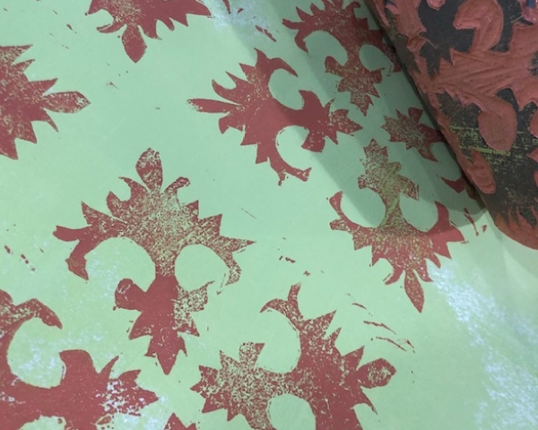 - Inking and hand-printing onto wallpaper rolls or sheets