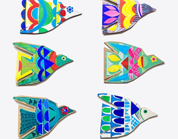 In this hands-on workshop, you’ll use a variety of printmaking and collage techniques to decorate your own wooden ornament, choosing from a curated selection of bird and flower-shaped forms.
