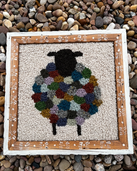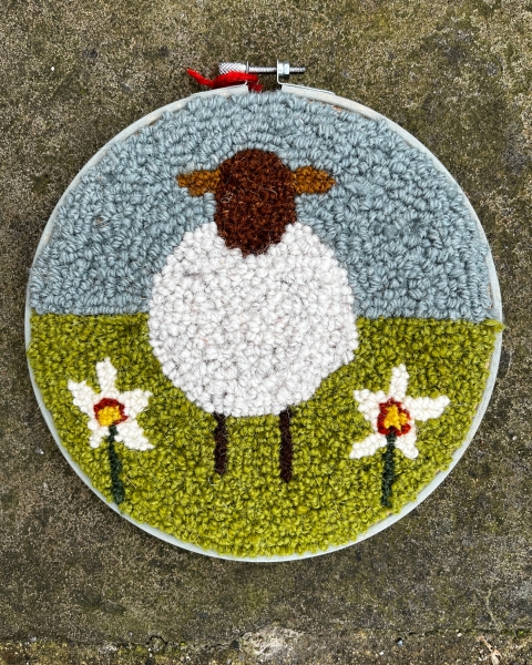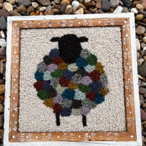 Using a custom made hooking frame, which is yours to keep, you will start the day learning this simple hooking technique on a sample piece of hessian.  Once you feel you have mastered the technique, you can choose colours for your sheep and start hooking your picture. No need to worry about the design as Carole’s kit includes the basic design. Once you get into the swing of yarn hooking, it can be the most relaxing and therapeutic process. You won’t finish the picture on the day but you will certainly have all the knowledge and materials to complete the design at home. Your technique will improve and you’ll pick up speed throughout the day and have the skills you need to create your own designs at home.