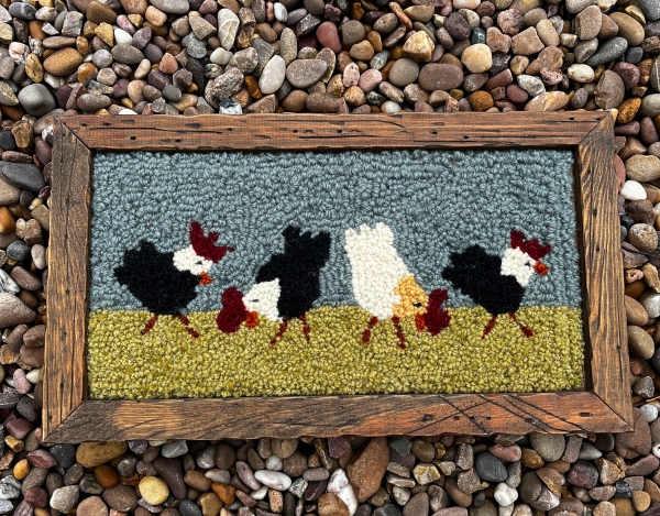 Learn about yarn hooking, how it differs from traditional rag rug hooking and what gorgeous, finely detailed creations you can make.  You will be working on fine weave hessian, with a small hooking tool and using gorgeous colours of carpet yarn to create your unique picture of either ‘three sheep’, ‘patchwork chicken’, ‘spring lamb’ or ‘chickens picture’ using one of Carole’s “all you will need” kit.